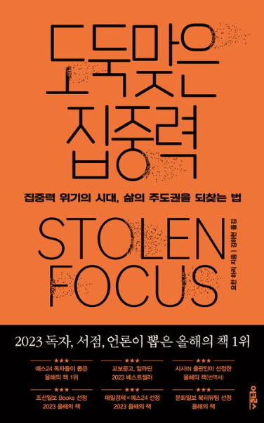<도둑맞은 집중력>은 식습관, 만성 스트레스와 피로도 그리고 경제적, 사회적인 관계인 모든 것이 집중력과의 상관관계가 있다고 소개하고 있고 무엇인가 집중하기 어려움을 느끼고 있는 분들에게 추천하고 싶은 책입니다.