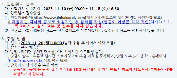 10월에 모집 요강이 나오고 11월 원서 접수를 시작합니다.