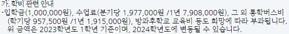 수업료 1년 7,908,000원